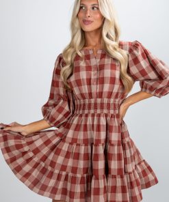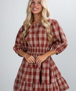 Step into effortless style with the Don’t Think Twice Plaid Mini Dress! Crafted from a soft, lightweight fabric, it features a playful tiered design that adds movement and dimension to the flattering mini silhouette. The classic plaid pattern brings timeless charm, while long sleeves and a subtle round neckline make it versatile for layering or wearing on its own. Perfect for brunches, casual outings, or seasonal gatherings, this dress pairs beautifully with boots or sneakers for an easy, stylish look that’s both comfortable and chic! Available in 2 colors. Lightweight Cotton Fabrication Plaid Checkered Print Notched V-Neckline Functional Button Front 3/4 Length Sleeves with Elastic Cuffs Smocked Elastic Waistband Flowy Tiered Fit Short/Mini Length 100% Cotton Hand Wash Cold, Hang or Line Dry Models are 5’2″ + 5’4″ and are wearing a Small.Garment Measurements in Inches:Small | Bust 36″ | Waist 26″ (Stretches up to 32″) | Hips 52″ | Length 34″Medium | Bust 38″ | Waist 28″ (Stretches up to 34″) | Hips 54″ | Length 35″Large | Bust 40″ | Waist 30″ (Stretches up to 36″) | Hips 56″ | Length 35.5″