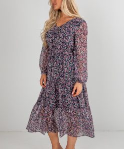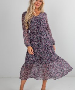 The Giving You My Heart Teal Floral Midi Dress is a graceful and effortlessly stylish piece! Crafted from lightweight, flowing fabric, it features a flattering midi length and long sleeves for a polished, modest silhouette. The vibrant teal hue is adorned with a delicate floral print, adding a fresh and feminine touch. Perfect for pairing with heels, boots, or flats, this dress transitions seamlessly from daytime events to evening outings, making it a versatile addition to any wardrobe! Lightweight Woven Knit Fabrication Floral Print V-Neckline Long Balloon Sleeves with Elastic Cuffs Elastic Waistband with Functional Drawstring Tie Flowy Tiered Fit Midi Length Lined Body, Unlined Sleeves Self + Lining: 100% Polyester Hand Wash Cold, Hang or Line Dry Model is 5’6″ and wearing a Small.Garment Measurements in Inches:Small | Bust 36” | Waist 26” (Stretches up to 32″) | Hips 44” | Length 49”Medium | Bust 38” | Waist 28” (Stretches up to 34″) | Hips 46” | Length 50”Large | Bust 40” | Waist 30” (Stretches up to 36″) | Hips 48” | Length 51”X-Large | Bust 42” | Waist 32” (Stretches up to 38″) | Hips 50” | Length 52”