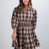 Add a touch of playful sophistication to your wardrobe with the Look Into It Cream Pinstripe Mini Dress! Crafted from a soft, lightweight fabric, it features a flattering collared neckline and long sleeves for a polished look. The pinstripe pattern adds classic charm, while the ruffle hem brings a flirty, feminine finish. With a tailored yet comfortable fit, this dress is perfect for brunches, date nights, or weekend outings. Pair it with ankle boots or heels to complete a chic, effortlessly stylish outfit! Lightweight Woven Knit Fabrication Striped Print Collared Neckline Functional Button Front Long Sleeves with Functional Button Cuffs Flowy Fit Ruffle Hem Side Pockets Short/Mini Length Lined Body, Unlined Sleeves Self + Lining: 100% Polyester Hand Wash Cold, Line Dry Model is 5’4″ and wearing a Small.Garment Measurements in Inches:Small | Bust 42″ | Waist 46″ | Hips 52″ | Length 34″Medium | Bust 44″ | Waist 48″ | Hips 54″ | Length 35″Large | Bust 46″ | Waist 50″ | Hips 56″ | Length 36″