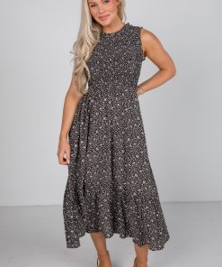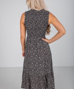 Step into effortless elegance with the Marvelous Time Black Smocked Floral Midi Dress! The smocked bust offers a flattering, fitted silhouette, while the flowing midi length adds a graceful, feminine touch. The classic black and white floral pattern keeps it versatile and chic, perfect for brunches, date nights, or garden parties. Pair it with sandals for a daytime look or dress it up with heels and accessories for a polished, sophisticated vibe! Lightweight Woven Knit Fabrication Floral Print Smocked Bust Ruffled Rounded Neckline Sleeveless Elastic Waistband Flowy Fit Ruffle Hem Side Pockets Midi Length 80% Rayon, 20% Nylon Hand Wash Cold, Lay Flat to Dry Model is 5’6″ and wearing a Small.Garment Measurements in Inches:Small | Bust 28″ (Stretches up to 34″) | Waist 26″ (Stretches up to 32″) | Hips 58″ | Length 49″Medium | Bust 30″ (Stretches up to 36″) | Waist 28″ (Stretches up to 34″) | Hips 60″ | Length 49.5″Large | Bust 32″ (Stretches up to 38″) | Waist 30″ (Stretches up to 36″) | Hips 62″ | Length 50″X-Large | Bust 34″ (Stretches up to 40″) | Waist 32″ (Stretches up to 38″) | Hips 64″ | Length 51″