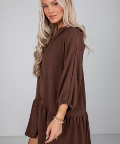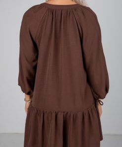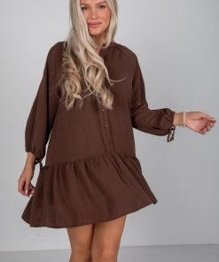 Feminine and flirty, the Sweet Little Things Brown Mini Dress is the perfect piece for any occasion! The long sleeves balance the playful mini length, while the ruffle hem adds a touch of movement and charm. With its rich brown hue, this dress is a fall favorite that can be styled up with heels and jewelry or kept casual with boots and a crossbody. Effortlessly chic, it’s a go-to for everything from brunch dates to evenings out! Lightweight Woven Knit Fabrication Notched V-Neckline Long Balloon Sleeves with Functional Drawstring Tie Cuffs Functional Button Front Flowy Fit Ruffle Hem Short/Mini Length 95% Polyester, 5% Spandex Hand Wash Cold, Hang or Line Dry Model is 5’6″ and wearing a Small.Garment Measurements in Inches:Small | Bust 44” | Waist 46” | Hips 58” | Length 35.5”Medium | Bust 46” | Waist 48” | Hips 60” | Length 36”Large | Bust 48” | Waist 50” | Hips 62” | Length 36.5”X-Large | Bust 50” | Waist 52” | Hips 64” | Length 37”