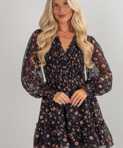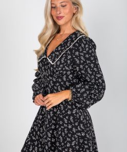 Step into effortless elegance with the There’s Something About It Black Floral Mini Dress! Featuring a delicate floral print on a classic black background, this dress blends feminine charm with versatile style. The long sleeves and collared neckline add a polished touch, while the mini length keeps it flirty and fun. Perfect for brunches, date nights, or casual outings, this dress pairs beautifully with boots, heels, or sneakers for a look that’s effortlessly chic and ready for any occasion! Lightweight Cotton-Blend Fabrication Floral Print Collared V-Neckline Functional Button Front Long Balloon Sleeves with Elastic Cuffs Flowy Fit Short/Mini Length Lined Body, Unlined Sleeves Self + Lining: 100% Polyester Hand Wash Cold, Line Dry Models are 5’2″ + 5’4″ and are wearing a Small.Garment Measurements in Inches:Small | Bust 32″ | Waist 30″ | Hips 36″ | Length 31″Medium | Bust 34″ | Waist 32″ | Hips 38″ | Length 32″Large | Bust 36″ | Waist 34″ | Hips 40″ | Length 33″