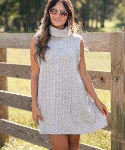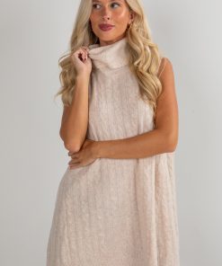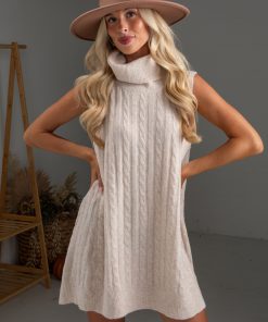 The Time Well Spent Cable Knit Turtleneck Sweater Dress is a cozy and stylish statement piece! Crafted from soft, textured knit, it features a classic cable pattern and a high turtleneck for warmth and sophistication. The sleeveless design keeps it versatile for layering under jackets or pairing with long-sleeve tops, while the mini length adds a flirty, modern touch. Perfect for dressing up with boots or keeping it casual with sneakers, this sweater dress combines comfort, charm, and effortless style! Available in 3 colors. Soft + Stretchy Cable Knit Fabrication Turtleneck Sleeveless Relaxed Fit Short/Mini Length 74% Acrylic, 22% Polyester, 4% Spandex Hand Wash Cold, Lay Flat to Dry Models range from 5’2″ – 5’6″ and are wearing a Small.Garment Measurements in Inches:Small | Bust 46″ | Waist 52″ | Hips 58″ | Length 31″Medium | Bust 48″ | Waist 54″ | Hips 60″ | Length 32″Large | Bust 50″ | Waist 56″ | Hips 62″ | Length 33″